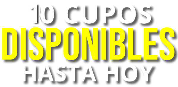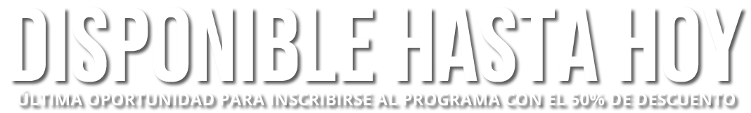 Debido a la alta demanda, los múltiples beneficios del curso y la excepcional Oferta del 50% que tenemos activa, nos vemos en la necesidad de limitar los cupos para las PRIMERAS 10 PERSONAS que se inscriban al programa.