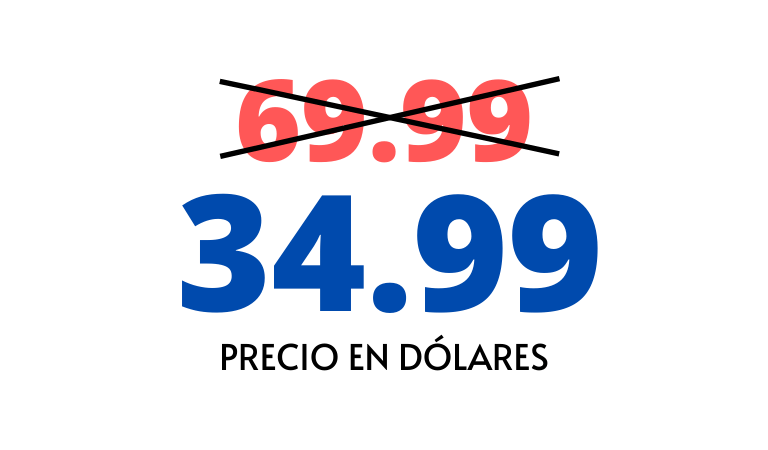 Un programa como éste en modalidad presencial tendría un costo de 100 a 150 dólares. Sin embargo éste curso digital te cuesta únicamente aprovechando el descuento de HOY a 34.99 dólares y tienes el acceso de por vida, podrás repetir el contenido del curso las veces que quieras para aclarar alguna duda que tengas y tendrás acceso a las futuras actualizaciones ya que es un programa vitalicio.